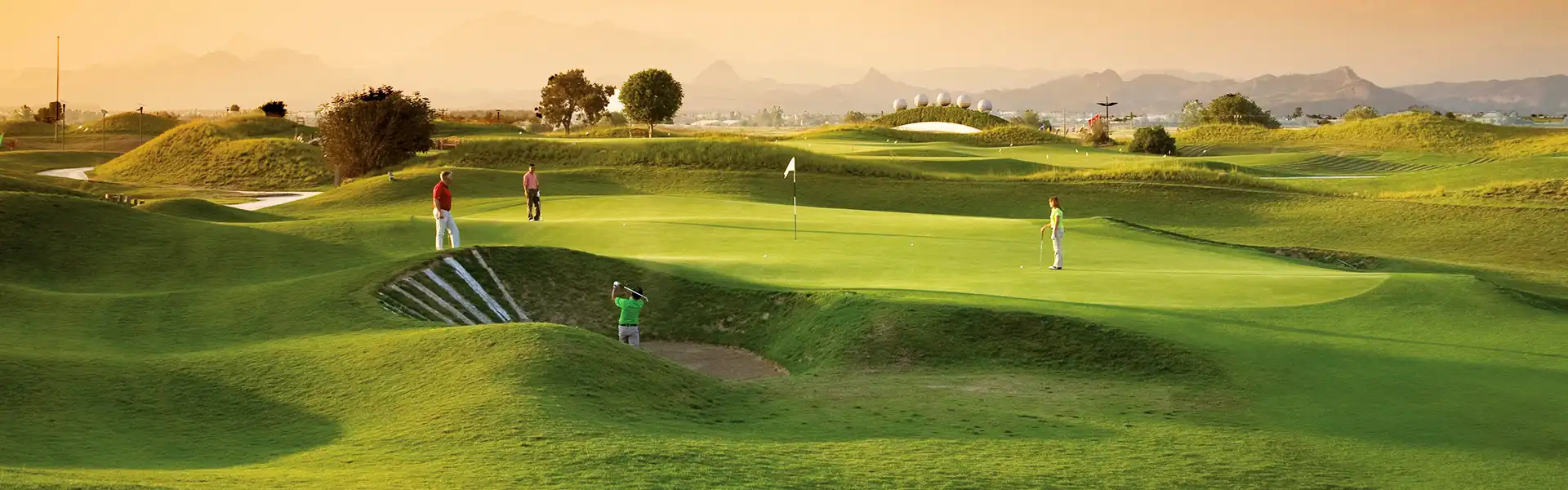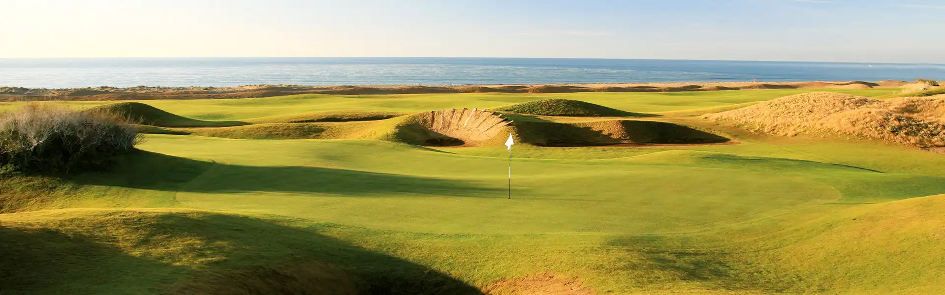 | Greens, lakes, bunkers | Average 600 m2 , few water hazards, large links waste & dunes bunkers |