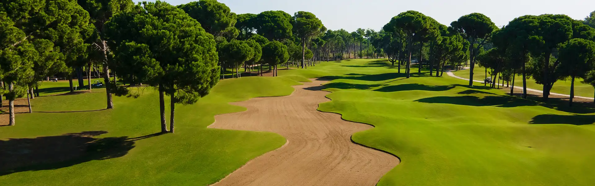 The Dunes Course is 5,643 meters long and has short fairway stretches. The links course with sand obstacles will be an easier challenge for you.